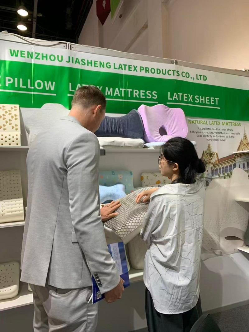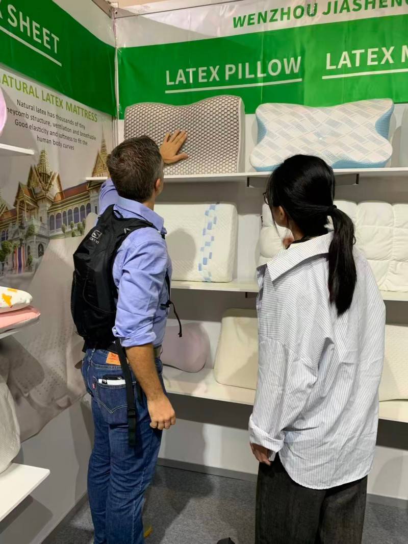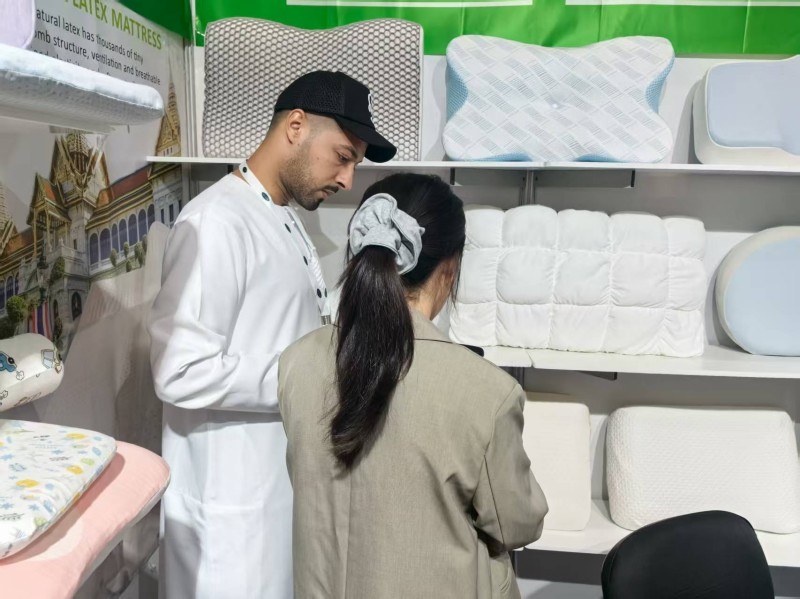 ที่นิทรรศการ Dubai Sleep นี้ เรารู้สึกเป็นเกียรติที่ได้นำเสนอหมอนที่เน้นการนอนหลับของเราแก่ผู้มาเยี่ยมชมจากทั่วโลก เราทุ่มเทเพื่อนำเสนอหมอนที่ขายดีที่สุดในตลาดสองใบ:หมอนยางพาราธรรมชาติและวัสดุอัจฉริยะที่ทันสมัยหมอนเมมโมรีโฟม- คุณสมบัติการคืนตัวอย่างรวดเร็วและการป้องกันภูมิแพ้ของน้ำยางเป็นที่ชื่นชอบของผู้ชื่นชอบน้ำยาง ในขณะเดียวกันเมมโมรีโฟมที่พอดีตัวที่สุดก็ช่วยให้นอนหลับได้ลึก การสื่อสารเชิงลึกกับลูกค้าในสถานที่ทำให้เรารู้สึกว่าพวกเขาต้องการหมอน เราเชื่อมั่นว่าการให้ทางเลือกส่วนบุคคลสำหรับพฤติกรรมการนอนหลับที่แตกต่างกันเป็นกุญแจสำคัญในการนอนหลับที่มีคุณภาพ
